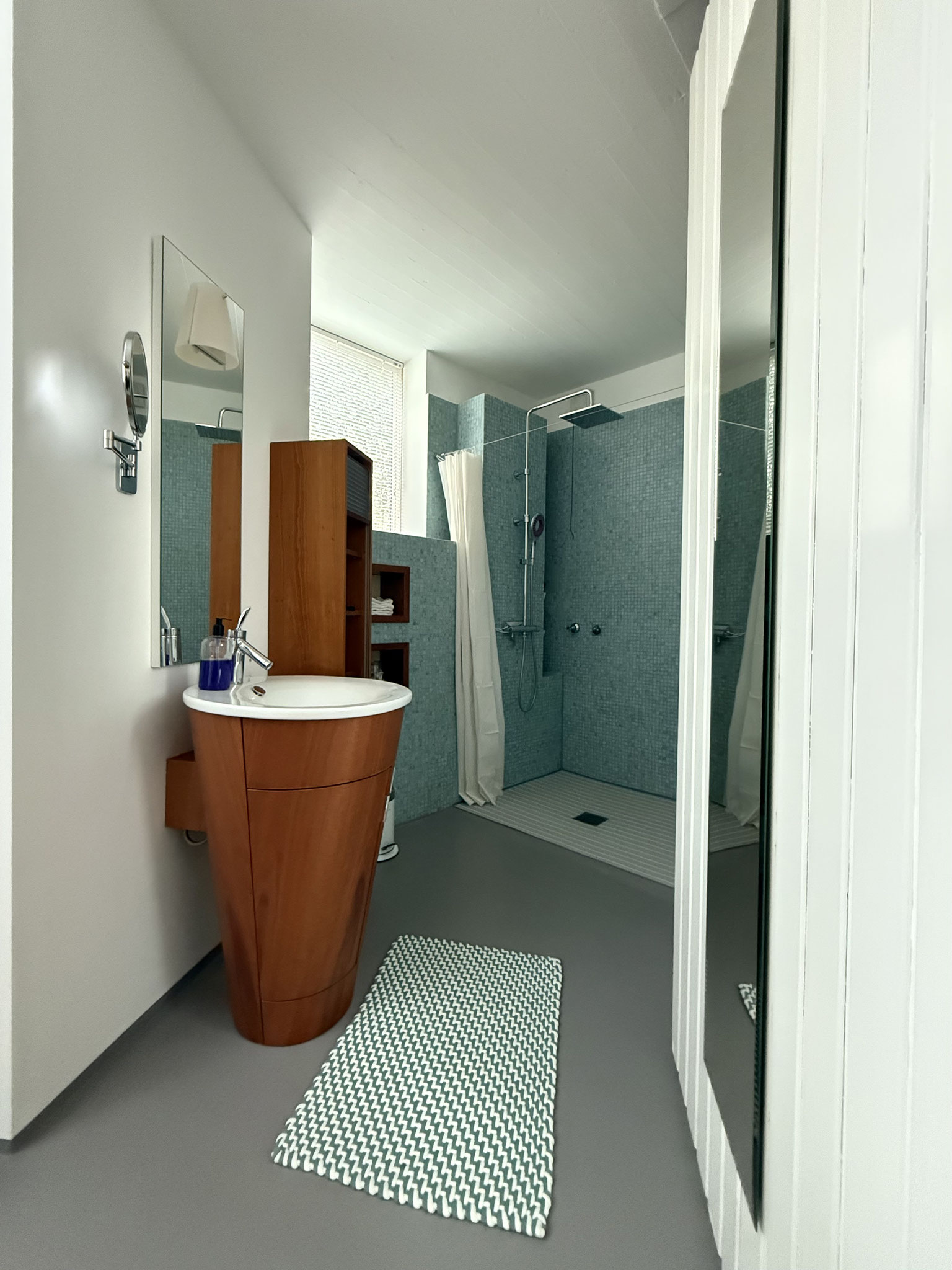 Schlafzimmer inkl. Badezimmer und Sauna: ca. 20 qm mit Kingsize Bett, Regendusche und Sauna